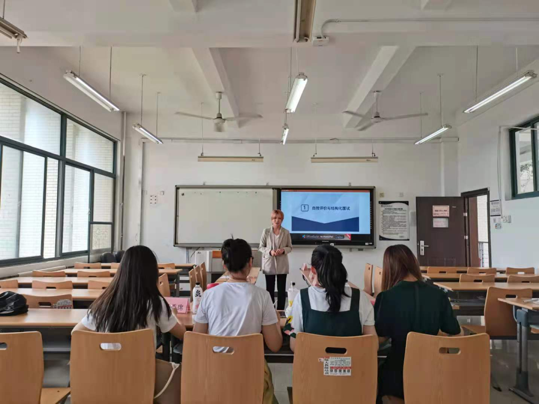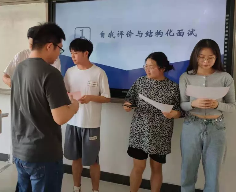 在上半场的“自我介绍(简历制作)与结构化面试”中,选手依次进行了三分钟自我介绍和现场抽题作答。每位选手递交了提前制作准备的简历,他们分别从自己的性格爱好、特长优势、求职意向等方面介绍了自己,在短短3分钟内向评委们展示了自己对于求职岗位的优势。面对评委们随机给出的问题,同学们沉着冷静,稳定发挥,给出了优异的回答。评委也对各位选手的表现和简历进行了详细的点评,提出了许多宝贵的意见。