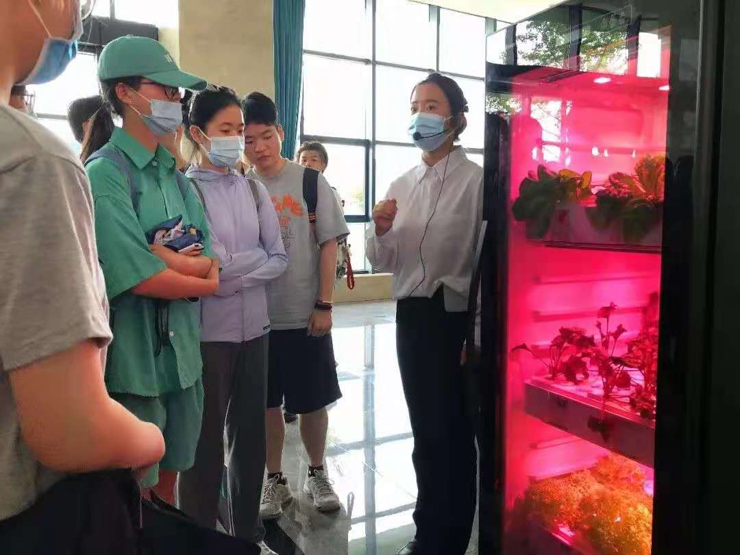 第一站,实践队来到了阳光智慧服务中心,这里建设有智慧云控制中心、植物工厂、农业技术交流培训中心。其中,智慧云控制中心每天都会有大量数据生成,也会有大量数字化指令输出,只需通过手机端,就能对大棚内的温度、光照、水、二氧化碳、营养液等进行实时监控,并根据室内作物生长情况下达指令,实现自动化浇水、施肥等一系列操作。通过参观,超前的科技应用和园区设计、科学的种植体系,让同学们大开眼界。