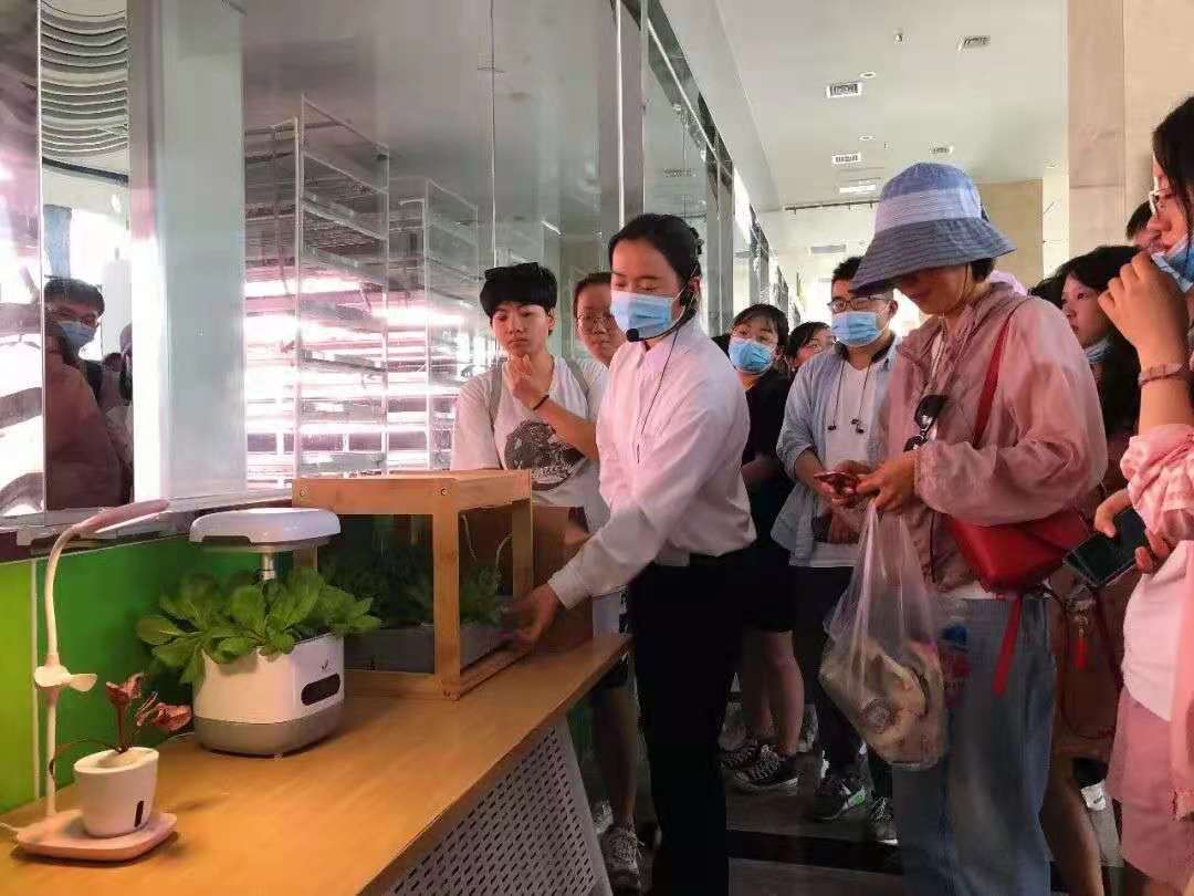 第二站,实践队先后来到园区北美连栋膜温室棚和智慧温室,无论是北美棚里争奇斗艳的鲜花还是在智慧温室里的西红柿和奶油生菜,都充满了生机勃勃的景象。金鱼吊兰、蝴蝶兰、杜鹃花等多种花卉颜色各异、竞相开放。一株西红柿蔓上的层层果实,让人垂涎欲滴。整个馆内红绿相间生机盎然,甚为壮观。园区智慧温室采用荷兰技术温室设施,内部种植系统全部采用荷兰进口装备,以满足叶菜、番茄、花卉的工厂化种植需求。园区整体设施体现了“国内领先,国际一流”的先进理念,是我国目前较具代表性的现代智慧农业产业园区。