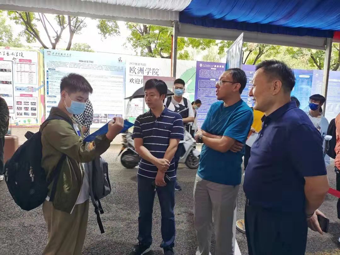 学院党委书记李敬先,院长张杰,副院长姬文刚,辅导员李亮亮、冯鑫、张会来到迎新接待点与新生亲切交谈,欢迎新生加入每日大赛