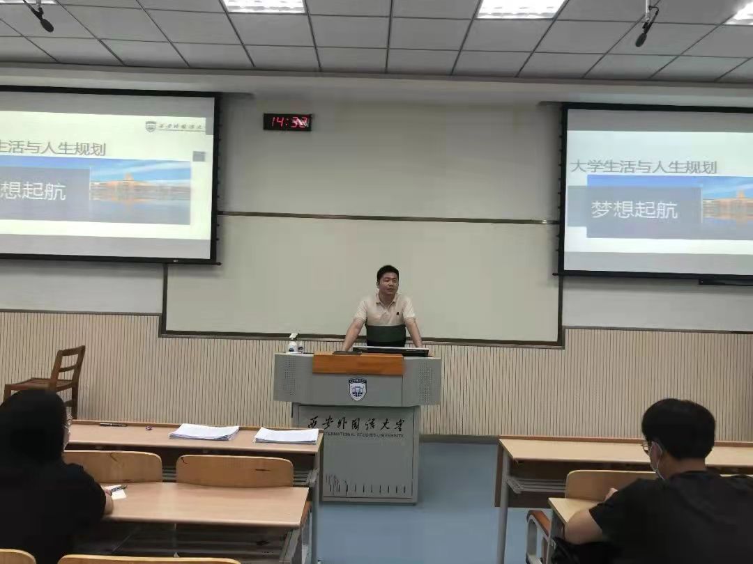 在SD110召开2021级开学第一课,辅导员冯鑫老师、各班代理班主任以及2021级全体同学到场参会,由冯鑫老师作了题为“大学生活与人生规划 ”的讲座。