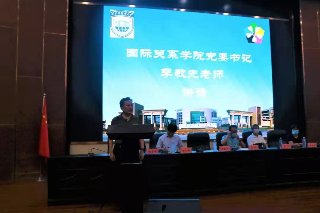 副院长姬文刚主持,学院党委书记李敬先、院长张杰、国际政治教研室主任邱宏、国际组织与全球治理教研室主任赵冬倩、外交学教研室副主任牛丹丹、办公室王欢、辅导员李亮亮、冯鑫、张会和21级全体新生参与了此次活动。
