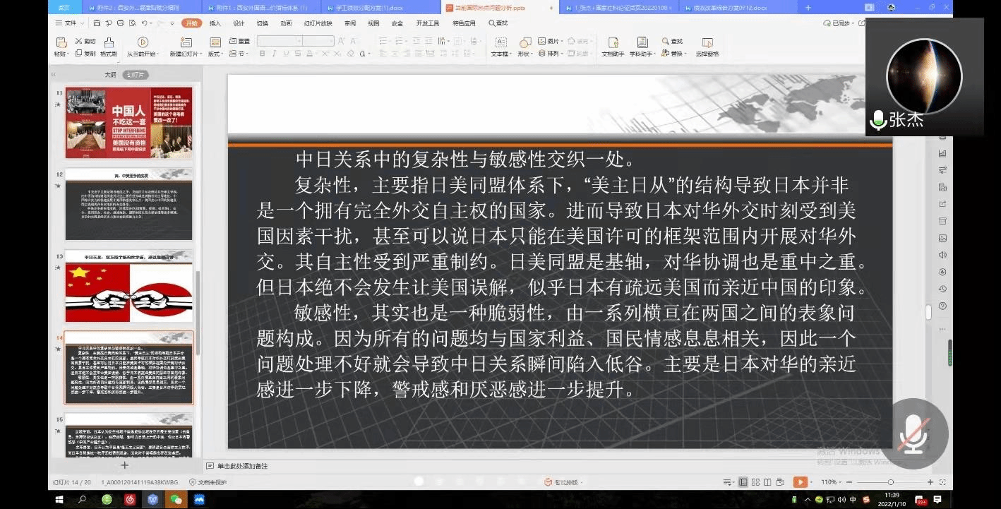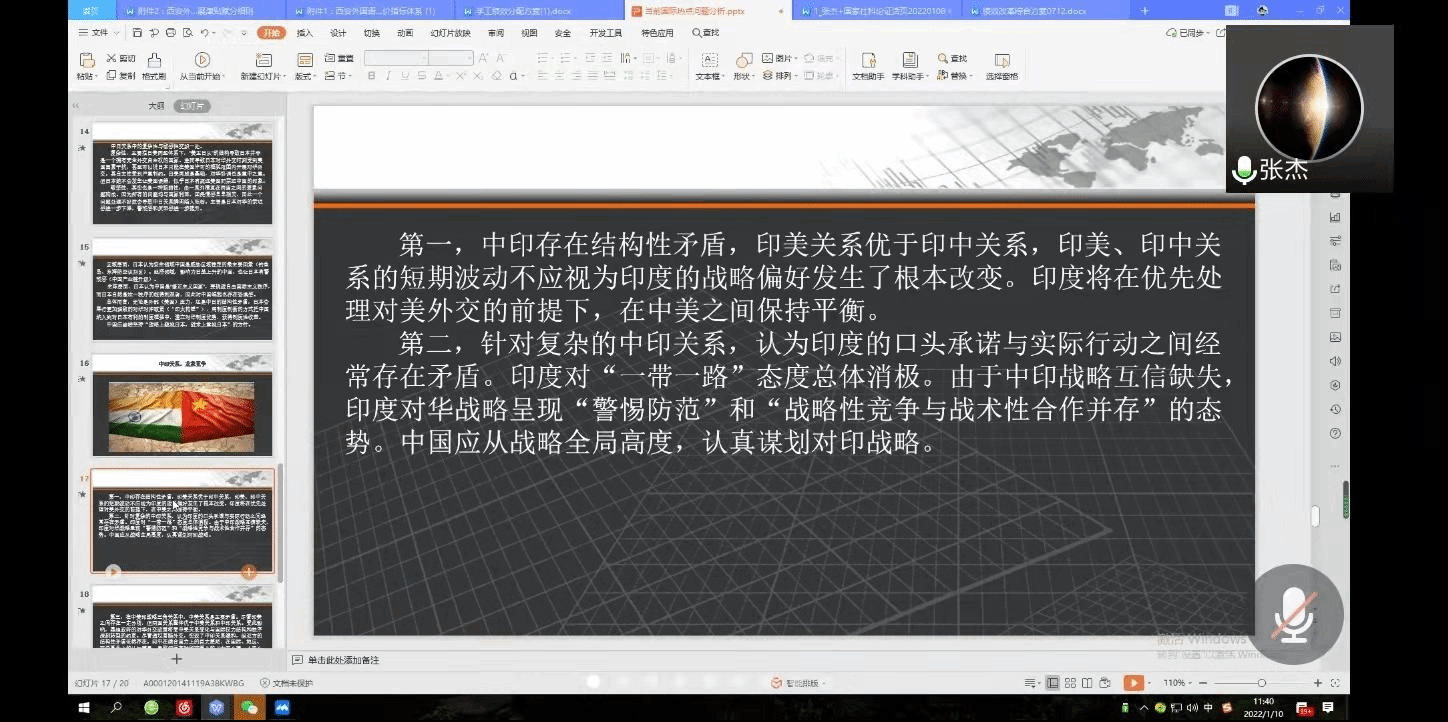 启动了2022年研究生共抗疫情云端学术周活动,院长张杰做了题为“当前国际格局演变与热点问题”主题讲座,每日大赛