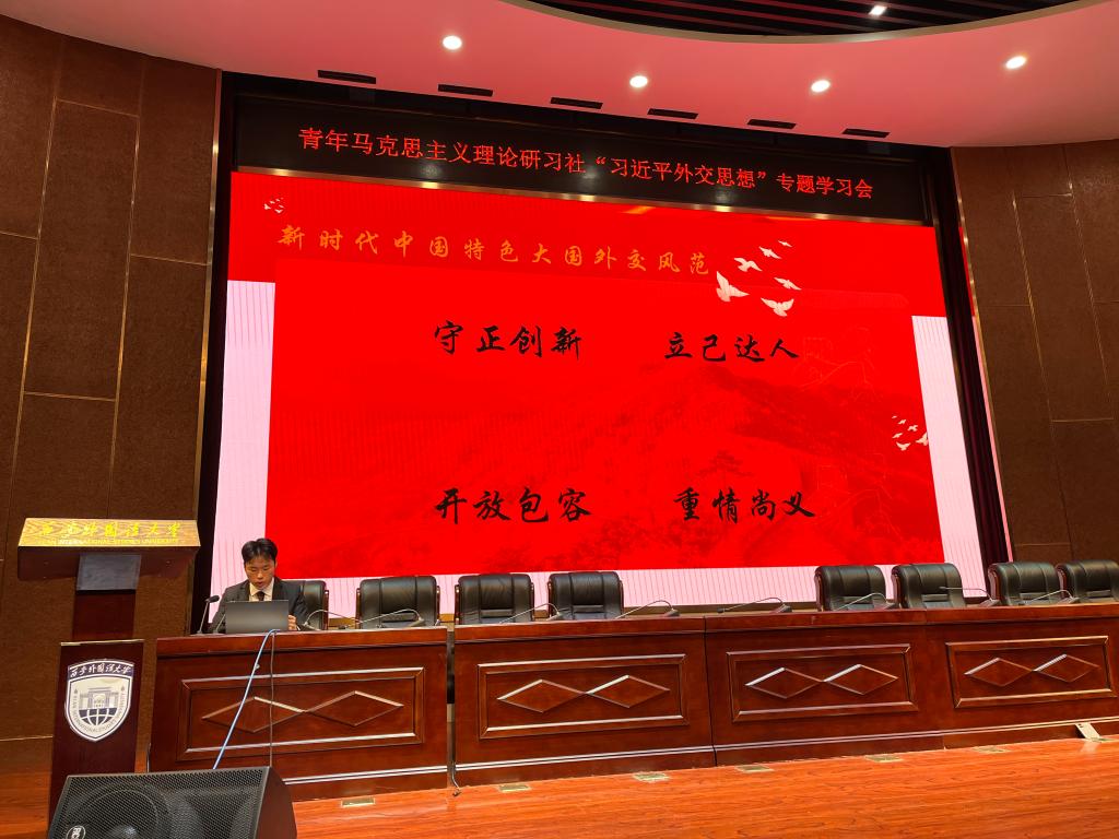 本次专题学习会围绕学习习近平外交思想的理论与实践展开,由学院青年马克思主义理论研习社社长刘辰昊主持,每日大赛
