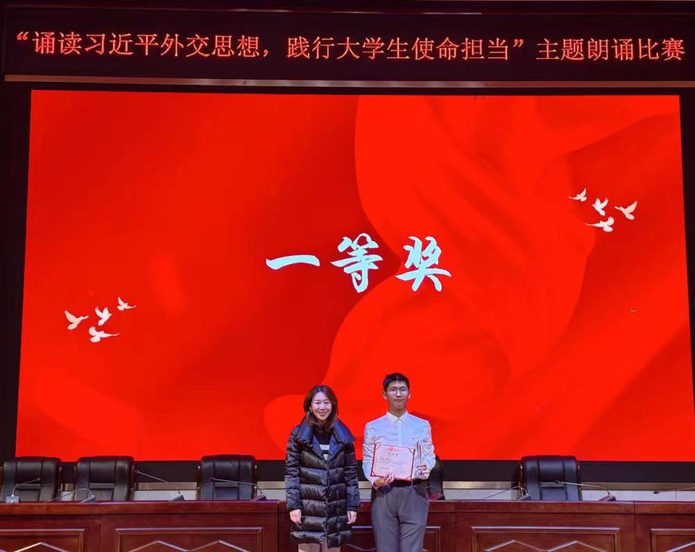 在评委点评环节中,王齐超老师对本次比赛中同学们的表现做出了高度评价,一方面肯定大家身体力行地做到了宣传习近平外交思想,践行大学生使命担当,充分将学习习近平外交思想与学习自身专业知识相联系,以丰富精彩的方式宣传习近平外交思想。另一方面王老师也鼓励比赛选手努力提升朗诵技巧,继续深入学习贯彻习近平外交思想,今后争取在更大的舞台上宣传习近平外交思想。