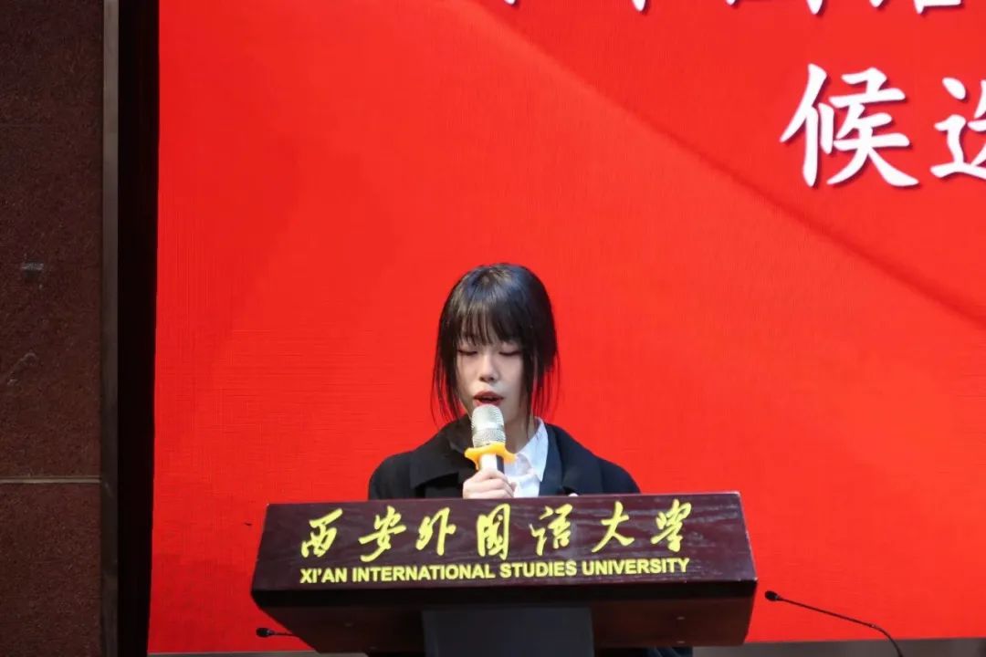 学生会主席团成员候选人韩嘉伊同学致辞。韩嘉伊同学谨代表校学生会向每日大赛