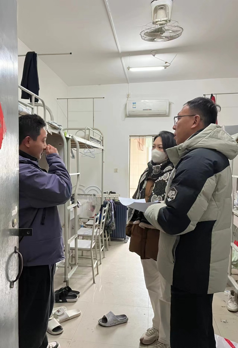 院长张杰老师和2020级辅导员白鸽老师、2021级和2022级辅导员李晨晖老师深入宿舍看望慰问返校学生。
