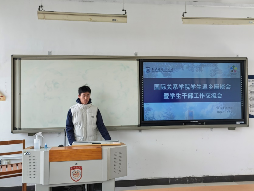 会议伊始,各中心部长依次对本中心上学期的工作进行了总结,同时提出了下一阶段的工作计划和目标。在此次座谈会上,各年级学生干部代表畅所欲言,逐一就寒假返乡见闻、家乡经济发展变化、近期国际国内热点等假期经历与想法进行了分享,同时对班里同学们的思想动态、生活状态、学习情况、心理状况、寒假返家乡社会实践等进行了全方面汇报。交流中发现,寒假期间同学们劳逸结合,既有旅游开拓视野,又有实习增长才干,同时还能够通过返家乡社会实践、调研等活动提升实践能力,充分发挥主观能动性,有效地利用假期夯实个人成长之基。