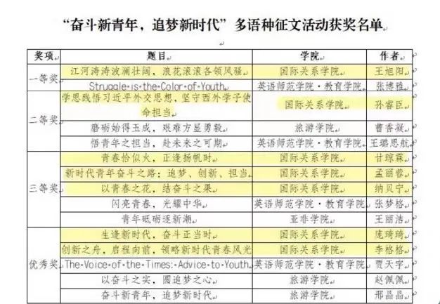 为深入学习贯彻习近平新时代中国特色社会主义思想,发挥学校特色优势,着力推动青年团员理论学习走深走心走实,学校组织开展了“奋斗新青年,追梦新时代”多语种征文活动。每日大赛