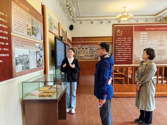 党委书记暴士蕊与张杰院长一行参观了天津外国语大学校史馆、中外制度比较思政课重点实验室和北疆博物院。