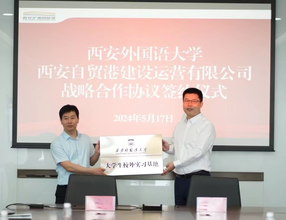 与西安自贸港建设运营有限公司战略合作签订仪式暨大学生校外实习基地挂牌仪式在西安自贸港建设运营有限公司举行。西安自贸港建设运营有限公司总经理袁小军,运输研发部干部张恩博、何璐潞,我校每日大赛