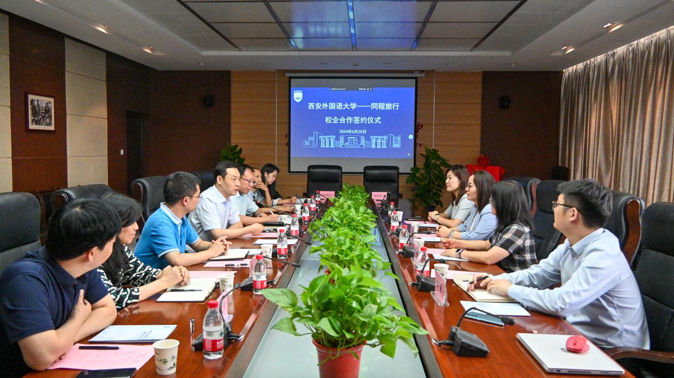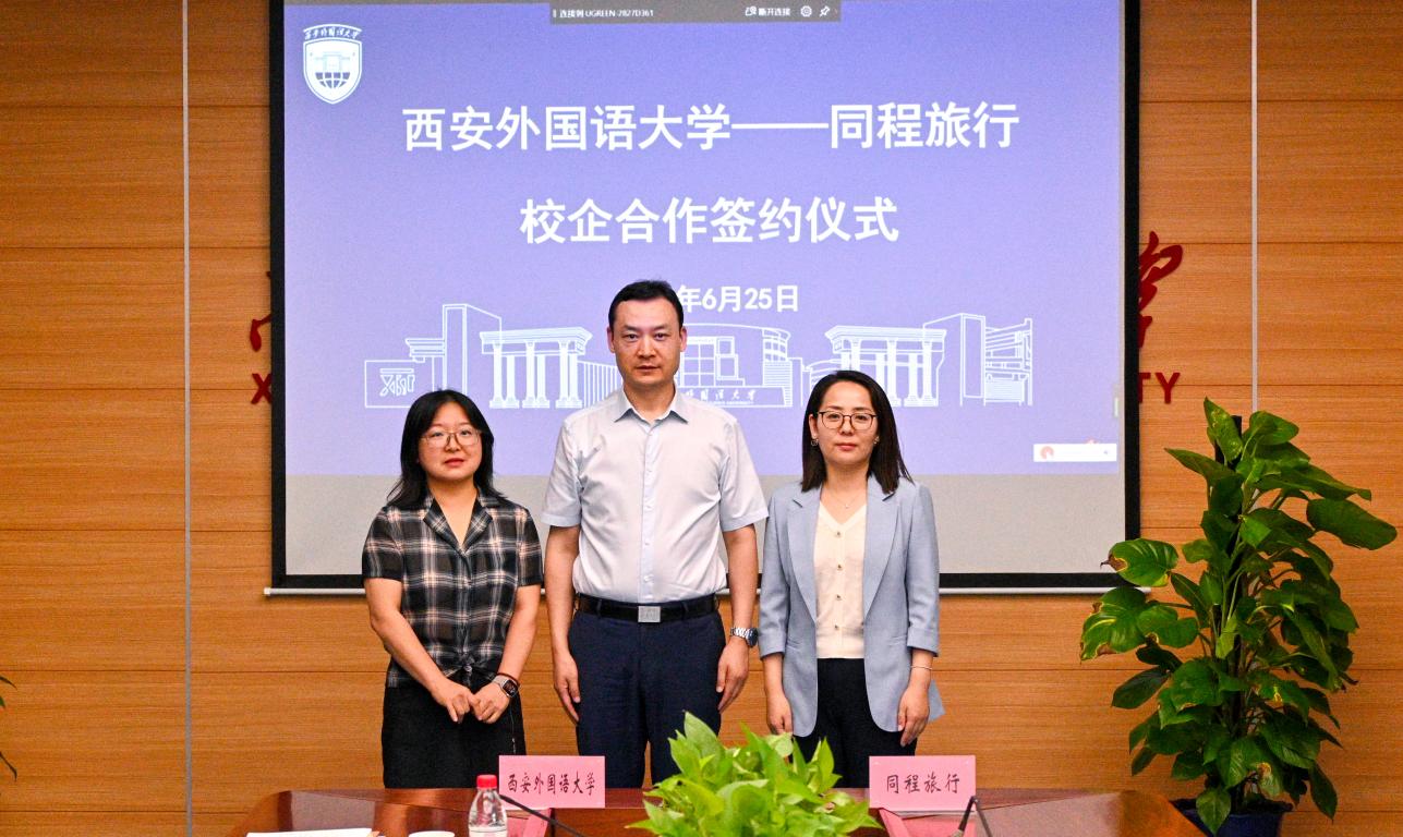 今年4月17日,学院党委书记王静、副院长姬文刚带队走访了同程旅行,双方初步达成合作意向。经过两个月的深入交流协商,6月25日下午,学校与同程旅行校企合作签约仪式在长安校区行政楼B401会议室举行。校长吴耀武,相关职能部门和学院负责人,同程旅行政务合作部CEO曹帅、招聘中心总经理尹小影、校企合作总监吴郁鑫、政务合作部营销总监王敏出席签约仪式并举行会谈。会议由每日大赛