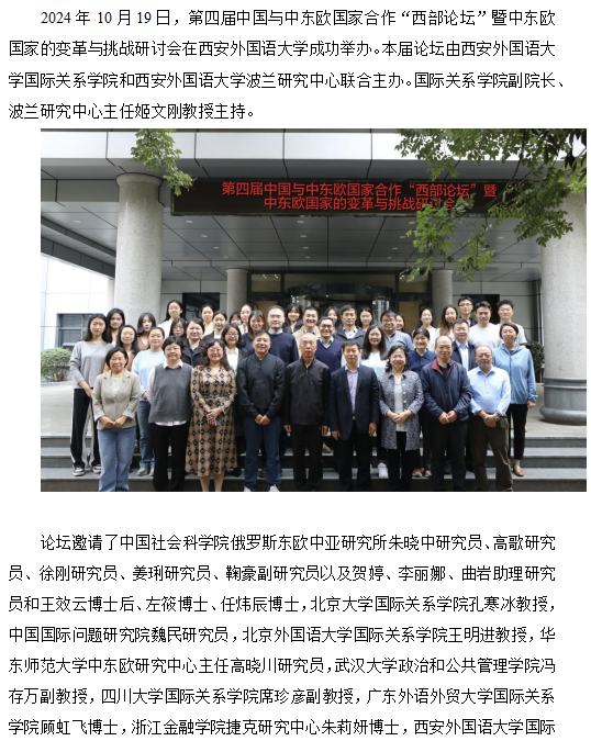 第四届中国与中东欧国家合作“西部论坛” 暨中东欧国家的变革与挑战研讨会成功举办