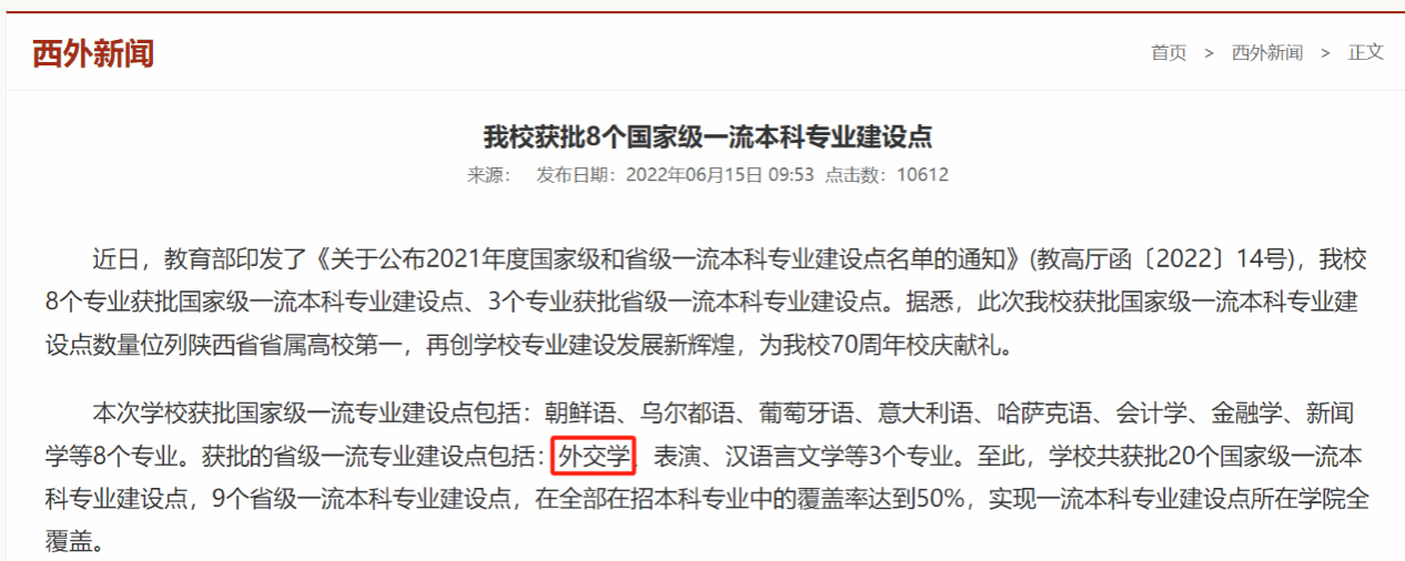 为适应国家与社会的发展对国际传播、国际组织、国别区域等领域卓越人才的需要,更有力地推进“一带一路”建设,学院分别于2018年9月、2023年9月联合俄语学院、亚非学院,创设卓越外交人才创新实验班。该班级以服务国家对外战略为目标,以解决外语和外交传统人才培养模式难以适应国家战略和社会需求为重点,以践行学科深度融合为指引,以发挥学校语言优势和体现学院专业特色为依托,以“复语+外交”人才培养模式改革为突破口,全方位实施“管理体制、课程体系、师资培育、培养方式”改革,切实提高学生的综合竞争力。目前已形成外语筑基、专业赋能、多元协同“复语+专业”的人才培养模式,历届毕业生均实现高质量落实去向率;实现专业建设和教师发展同频共振,作为重要参与人获批省教学成果奖特等奖。