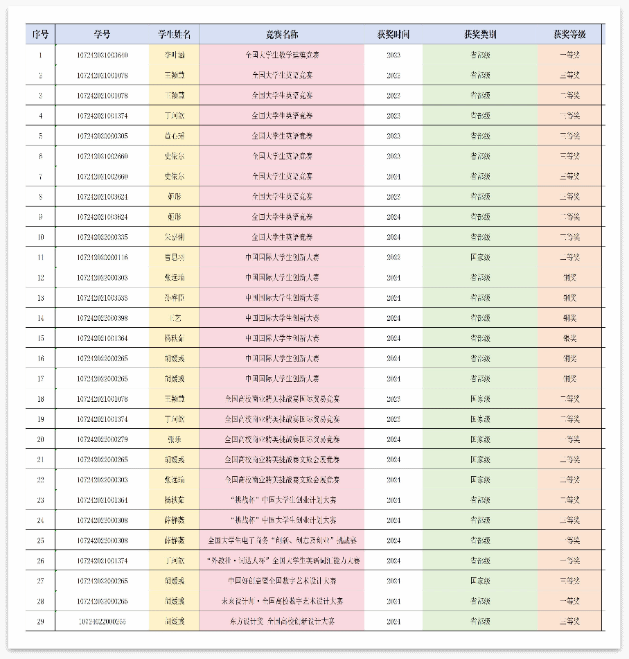 通过推动科研项目吸纳、学术规范辅导、创新创业指导、前沿知识强化等措施提升学生从事科学研究及创新创业的能力。近3年来,学生发表学术论文10余篇,获得省级及以上竞赛奖励30余项。