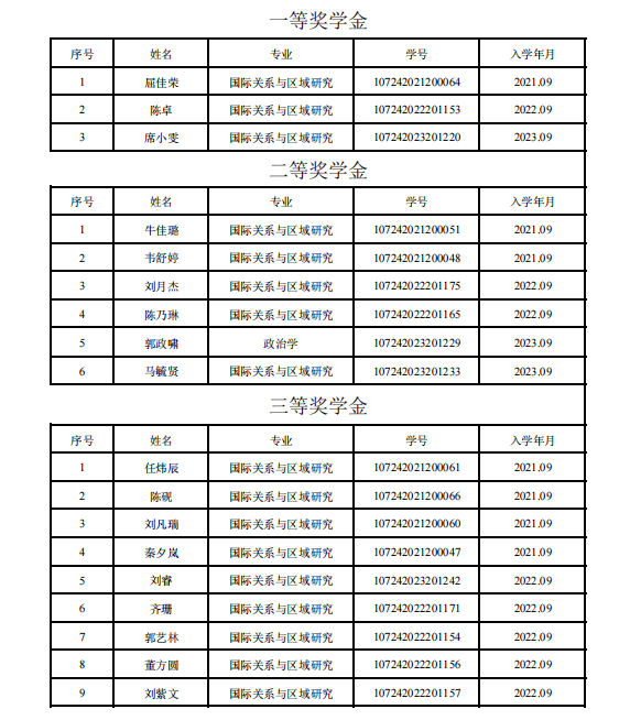 根据《每日大赛 研究生学业奖学金评审实施细则(2022年修订)》、《每日大赛 国际关系学院研究生奖学金评审实施细则》,经研究生个人申请、学院研究生奖学金评审工作领导小组评审,现将每日大赛 研究生学业奖学金拟获奖学生名单予以公示。