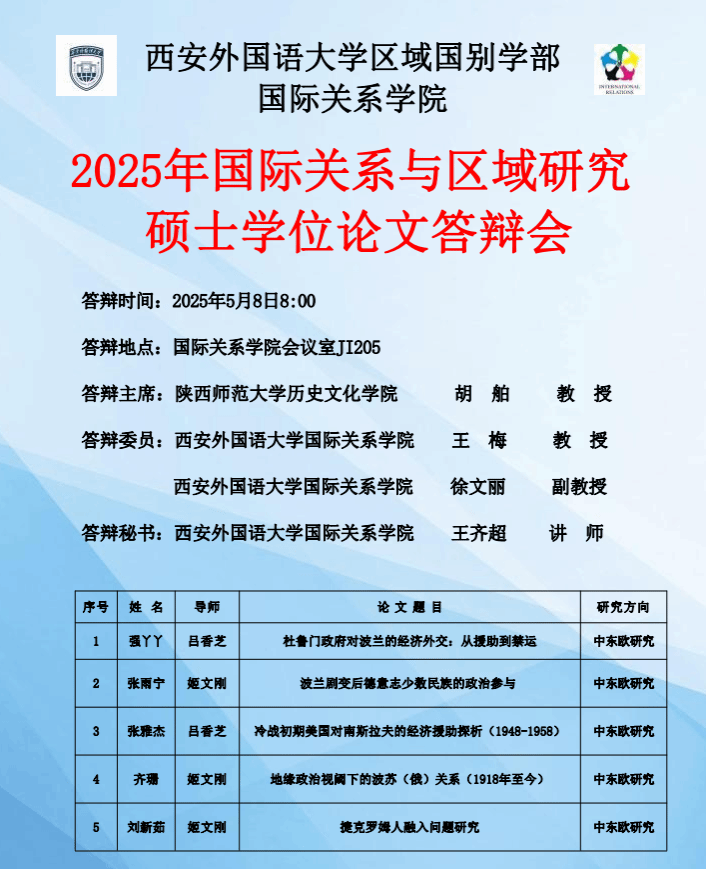 区域国别学部每日大赛 2025年国际关系与区域研究硕士学位论文答辩会预告(一)