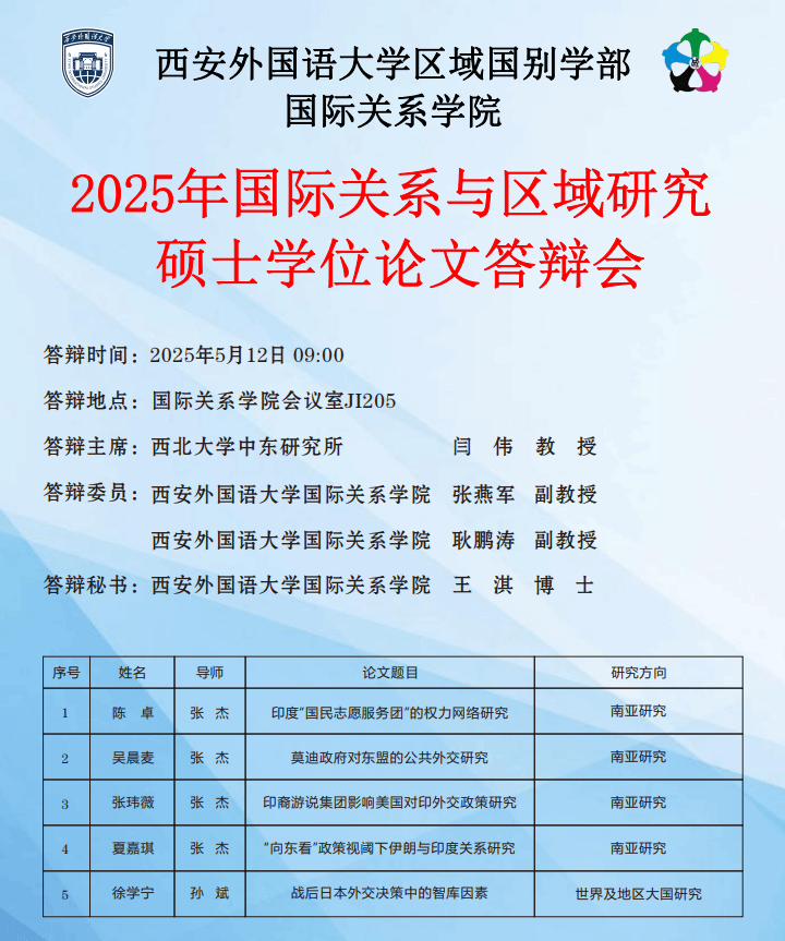 区域国别学部每日大赛 2025年国际关系与区域研究硕士学位论文答辩会预告(二)