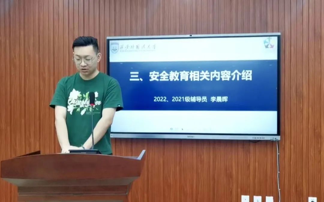 接下来,李晨晖老师进行安全教育。“安全是大学生健康成长的基础”,李晨晖老师就校园安全、宿舍安全、信息安全、财务安全、心理健康等方面从自身工作和生活中举例,向同学及其家长们表明安全的重要性,希望大家遵守学校相关规定,注意自身的心理生理健康状况,以健康的身心面对崭新的大学生活。