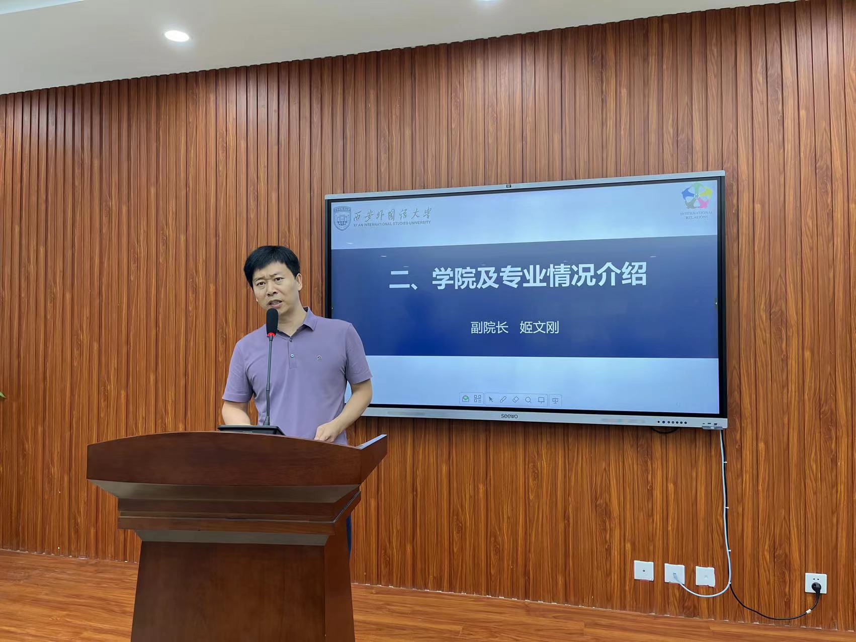 随后,副院长姬文刚老师讲话,姬老师首先介绍了学院设国际政治、国际组织与全球治理和外交学专业的基本情况和发展前景。随后姬老师介绍了卓越外交人才俄语创新实验班的选拔方式和基本概况,以及其拥有的特殊优势。随后介绍了研究生推免的原则、要求,竞争方式等。