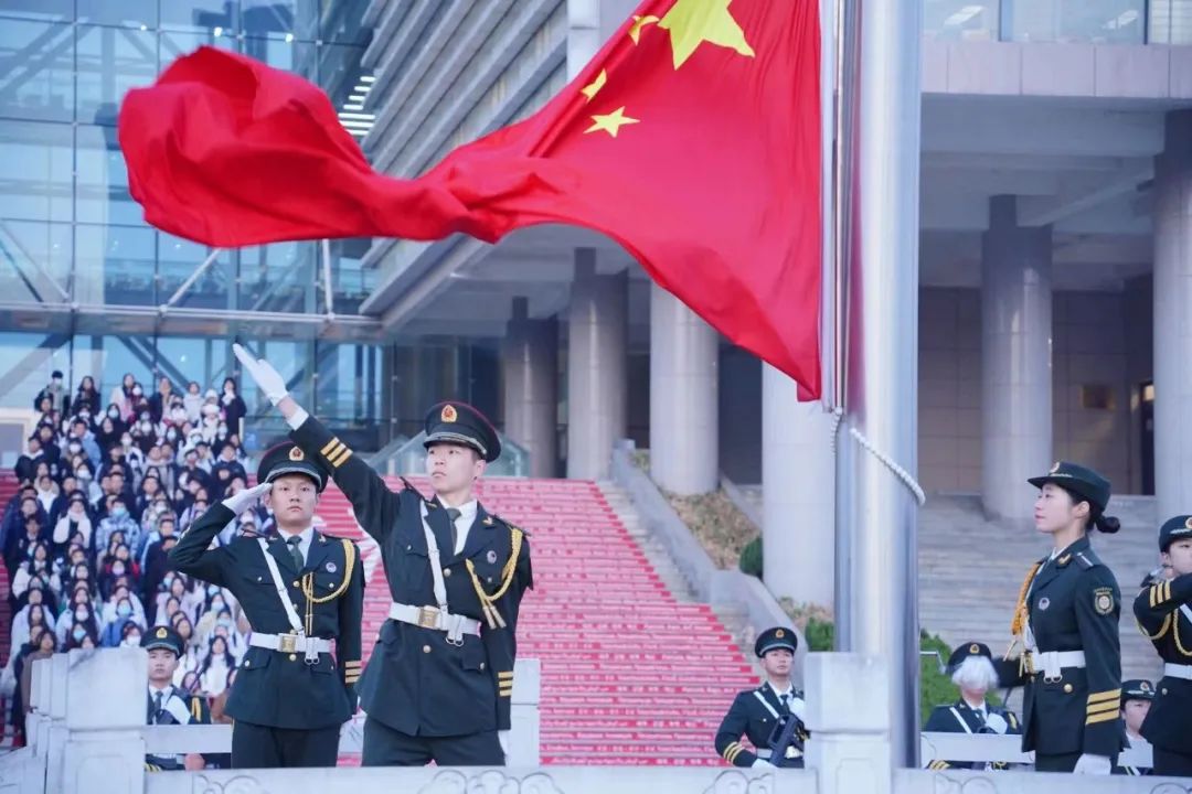 组织师生观礼升旗仪式,学院领导、各年级辅导员以及2022、2023级学生参与本次仪式。