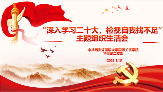 学生第二党支部于2023年3月15日下午,在JE426召开“深入学习二十大,检视自我找不足”组织生活会。活动由党支部书记冯鑫老师主持,支部全体学生党员参加本次活动。