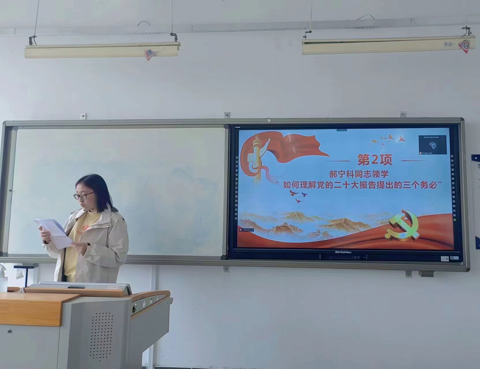 活动第二项,宣传委员郝宁科同志领学文章《如何理解党的二十大报告提出的三个务必》。“三个务必”与70多年前毛泽东主席提出的“两个务必”既一脉相承又与时俱进,站在新的历史阶段,全党同志务必不忘初心、牢记使命,务必谦虚谨慎、艰苦奋斗,务必敢于斗争、善于斗争,谱写新时代中国特色社会主义更加绚丽的华章。郝宁科同志也结合自身经历分享个人对“三个务必”的学习心得。