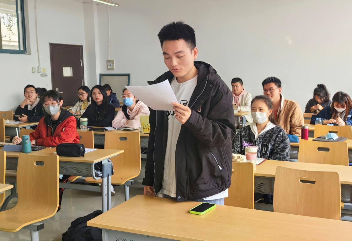 活动第一项,冯鑫老师领学文章《如何理解党的二十大的重大意义》,文章从四个角度对党的二十大的重大意义进行了深度的剖析。第一,大会召开的时间节点和时代背景非常重要而特殊;第二,党的二十大充分彰显了“两个确立”的决定性意义;第三,党的二十大取得了一系列具有长期指导意义的重大理论和实践创新结果;第四,党的二十大科学回答了“以党的自我革命引领社会革命”这一重大历史命题。冯鑫老师激励学生党员深入学习和弘扬党的二十大精神,加强理论学习,努力提高自身的政治素养。