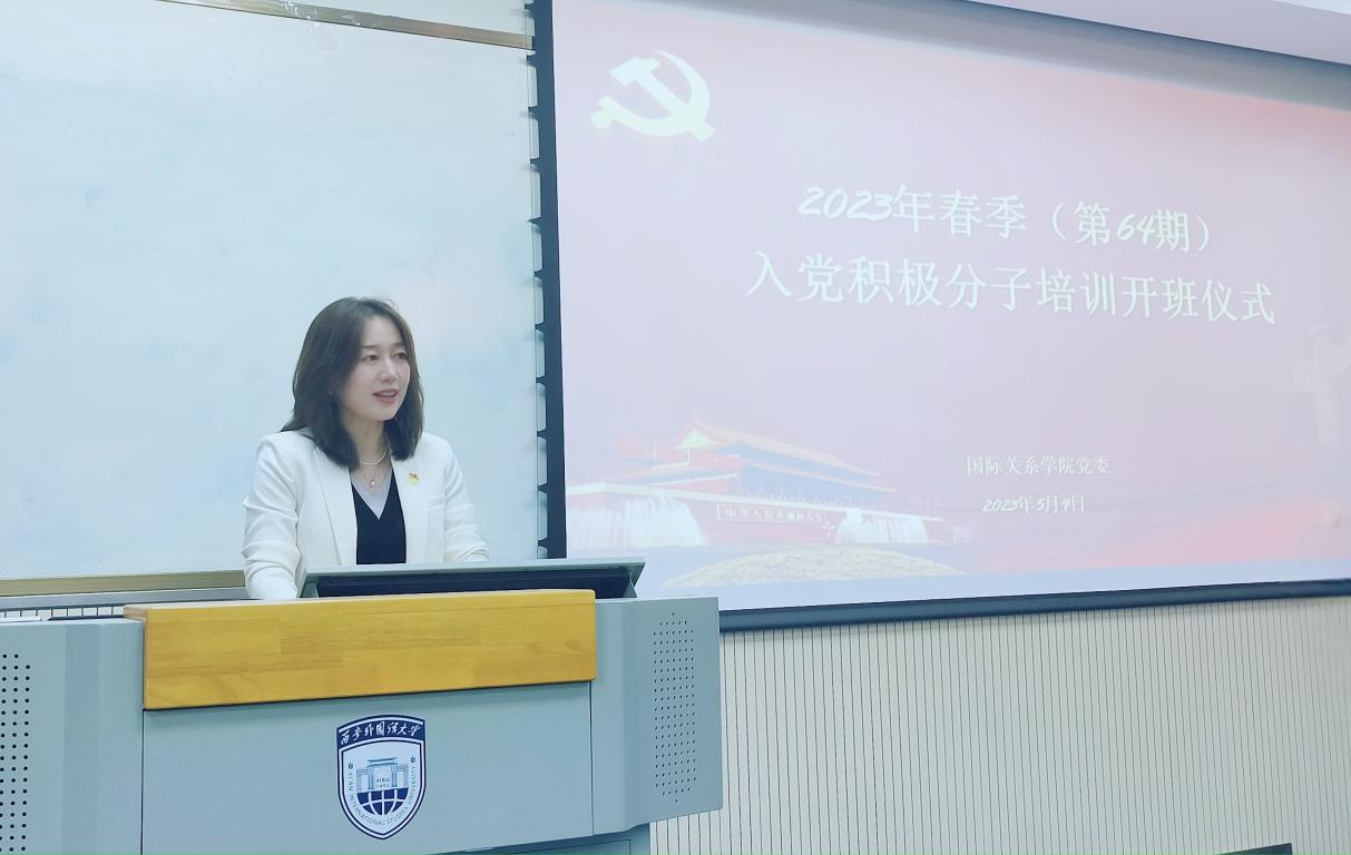 开班仪式上,大家集中观看了中国共产党国际形象宣传片,一同回顾了党的光辉历程,重温党的初心使命,对党在新时期的历史使命有了更加深刻的认识,对新时代青年的历史使命有了更加坚定信念。随后入党积极分子代表国政2201 班胡媛彧发言,她表示作为新时代青年,要以实际行动诠释志气、骨气与底气,将个人理想同祖国前途、民族命运紧密联系在一起,她将与其他所有入党积极分子一起认真学习党的理论,严格要求自己,将理论知识落实到行动,坚定立场,努力提高自身素质,端正入党动机,争取早日入党。