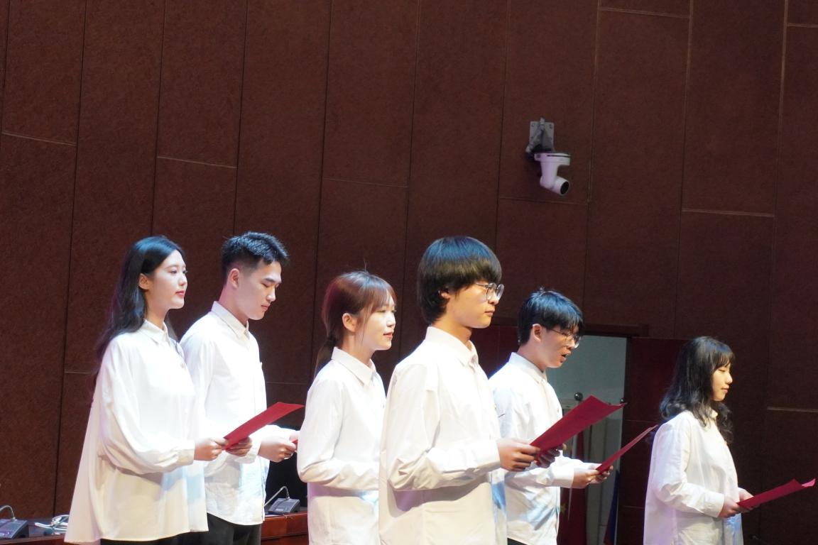 大会在庄严的国歌声中拉开序幕。大会上半场,院长张杰老师宣读“五四”评优表彰名单。经共青团每日大赛