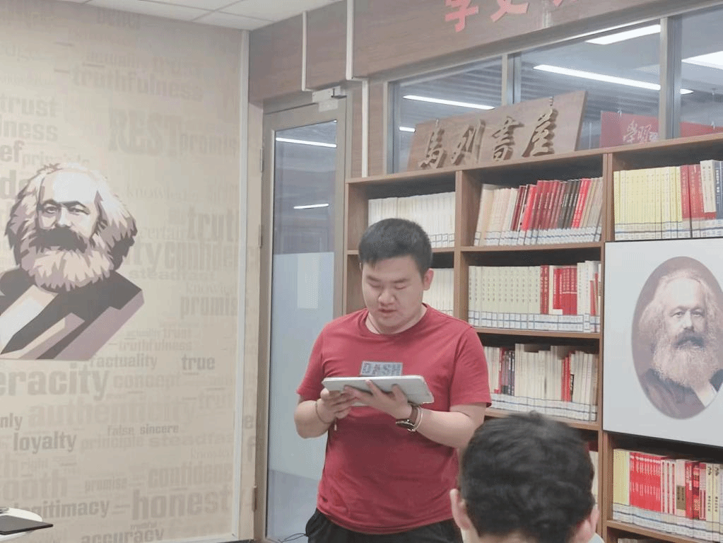 研究生导师吕香芝充分肯定了本次活动的意义,指出共产党人把共产主义作为自己的信仰,这种信仰是建立在对马克思主义的深刻理解之上,建立在对历史规律的深刻把握之上。《共产党宣言》思想深邃,是世界上传播最广泛、影响最大的经典之一,希望同学们在日常学习生活中认真学习《共产党宣言》等马克思主义经典著作,从中体悟历史规律,汲取信仰力量,进一步坚定中国特色社会主义的道路自信、理论自信、制度自信和文化自信。