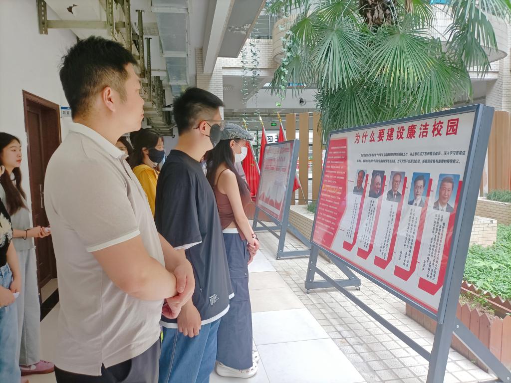 活动第二项,参观党史教育专区和廉政文化宣传栏。第二支部全体成员集体前往教学楼E区一楼参观了以延安精神为核心的党史教育专区和廉政文化宣传专栏,并跟随讲解员聆听党史故事。宣传栏主要以延安精神为核心,按照时间顺序,讲述了一系列在陕北地区发生的战役以及重大事件,展现了革命先辈们为中国的解放所做出的卓越贡献,教育广大党员廉洁校园建设的重要性,激发了党支部成员们以更加饱满的精神投身到祖国的社会主义现代化建设当中。