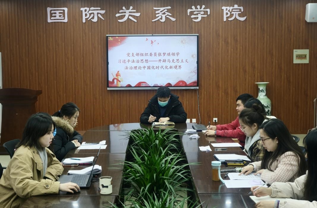 党支部组织委员张梦琪同志领学了《习近平法治思想--开辟马克思主义法治理论中国化时代化新境界》。她指出,习近平法治思想是把马克思主义法治理论同中国法治建设具体实际相结合、同中华优秀传统法律文化相结合的重大理论创新成果,是原创性的当代中国马克思主义法治理论、21世纪马克思主义法治理论。希望全体党员结合宪法宣传周各项活动,认真学习《中华人民共和国宪法》,带头在学院营造学习宪法知识、弘扬宪法精神、维护宪法权威的良好氛围。