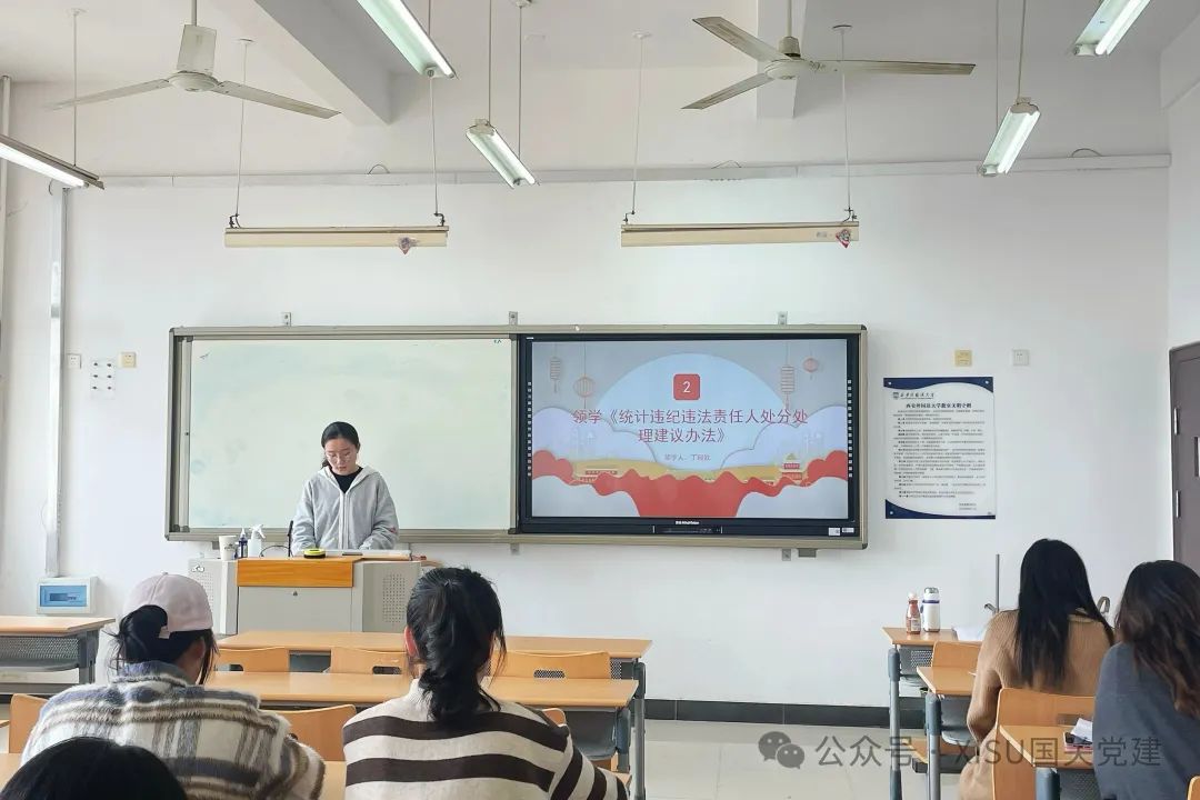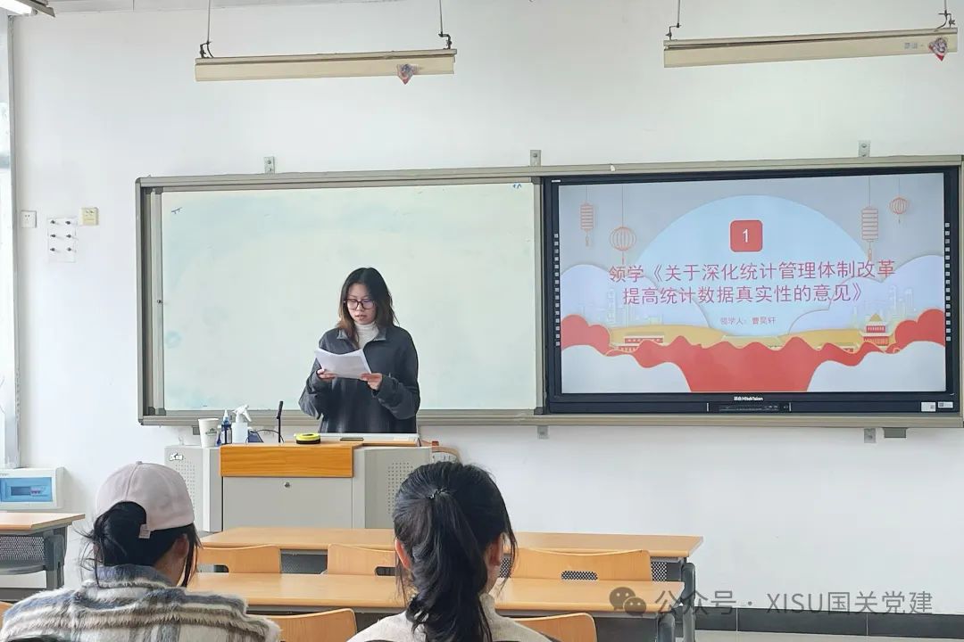 学生第二党支部于2024年3月13日中午,在JE426召开“深入学习贯彻习近平总书记关于统计工作和防治统计造假重要讲话重要指示批示精神”主题党日活动。活动由项新悦同志主持,支部书记李晨晖和全体学生党员参加本次活动。