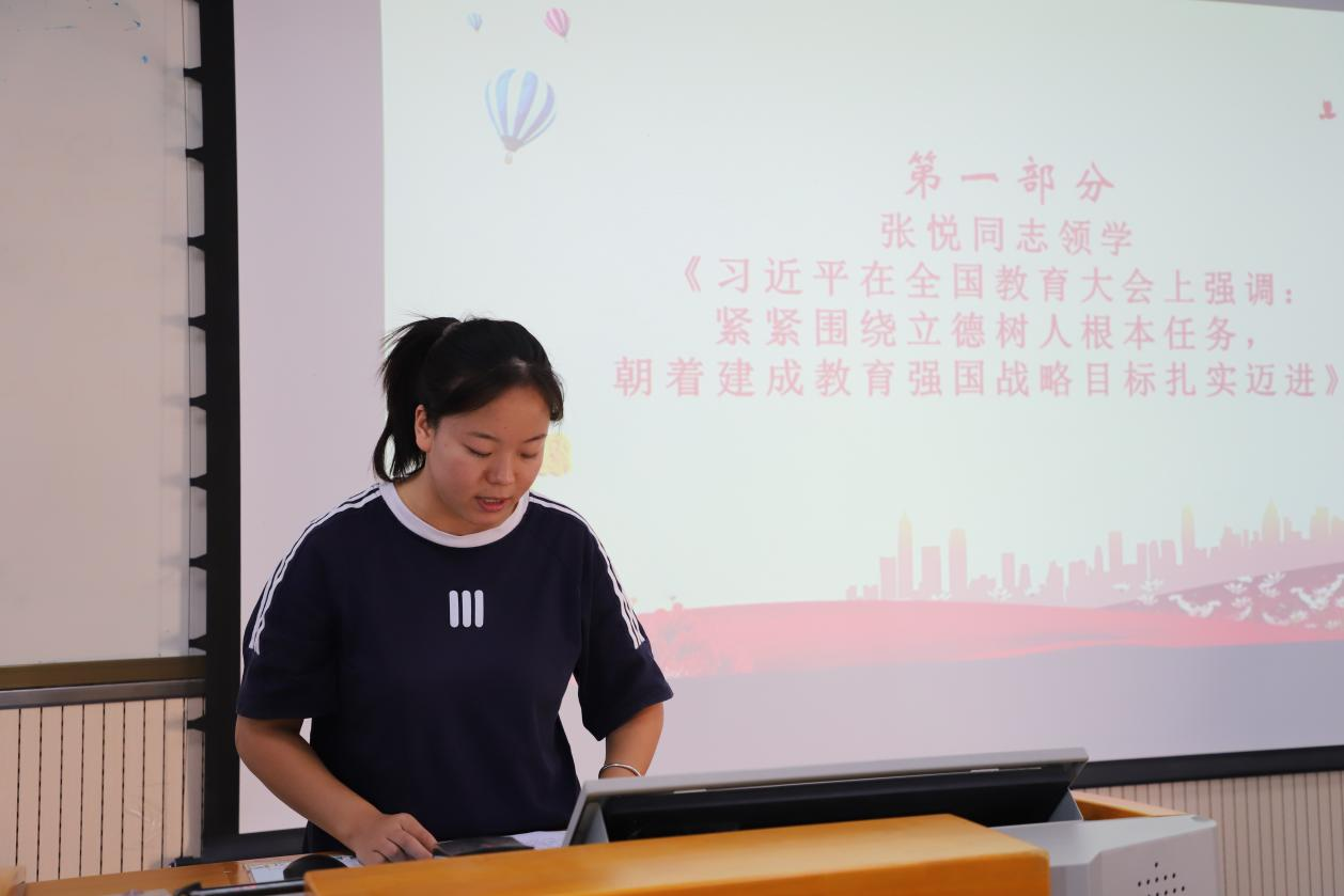 活动第一项,由学生第二党支部张悦同志带领全体党员进行“立德树人筑根本,迈向教育强国路”主题教育学习。通过本次领学,同志们更深刻地认识到教育在强国建设和民族复兴中的重要地位以及建设教育强国的战略意义。广大青年同志要积极响应总书记号召,勇于担当、敢于创新,在思想和行动上与党中央保持高度一致,积极投身教育强国的伟大事业,为实现中华民族伟大复兴贡献青春力量。