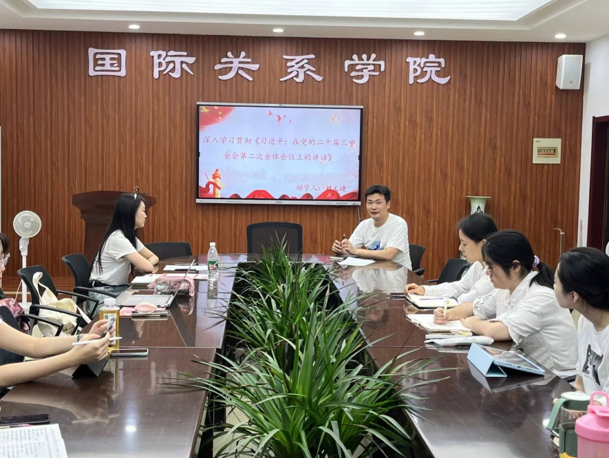 研究生党支部于9月26日中午在JI205会议室开展“学习贯彻习近平总书记在党的二十届三中全会第二次全体会议上的讲话精神”主题党日活动。活动由党支部副书记党欣雨同志主持,支部全体党员参加了本次活动。