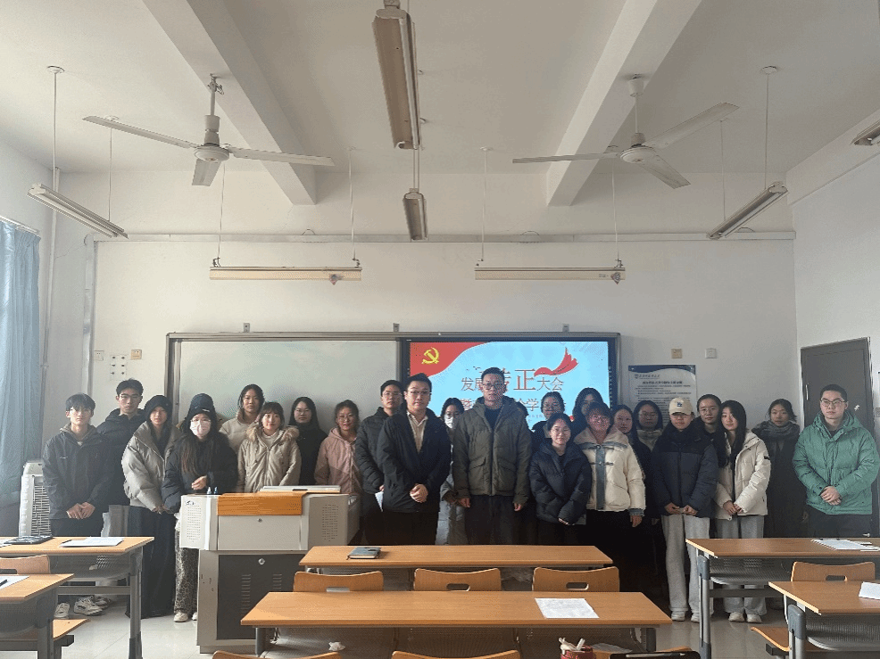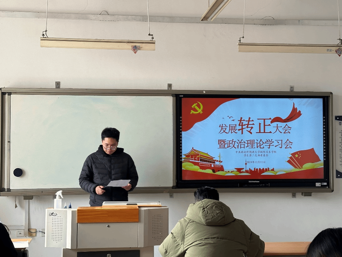 学生第二党支部在教学楼JE426召开党员发展转正大会暨政治理论学习会。党支部书记李晨晖、学生党员及发展对象参加此次会议,会议由甘琼霖同志主持。