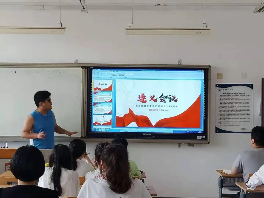 本支部第二学习小组展示了近期党史学习成果。许嘉森、刘雨、杨传德三位同志分别从历史背景、历史地位、过程和决议内容、精神内涵四个方面带领大家回顾学习了遵义会议。遵义会议精神既是发扬民主、集思广益、凝聚集体智慧的典范,也是面对重大危机,万众一心,团结一致,齐心协力,众志成城的典范,直到今日“坚定信念、实事求是、独立自主、敢闯新路、民主团结”的遵义精神仍是激励我们攻坚克难、不断前进的不竭动力。